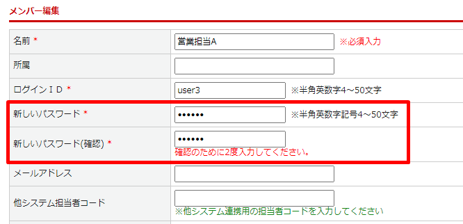 パスワードの変更ができません。「システム設定」の権限のあるメンバーがパスワードを変更してください