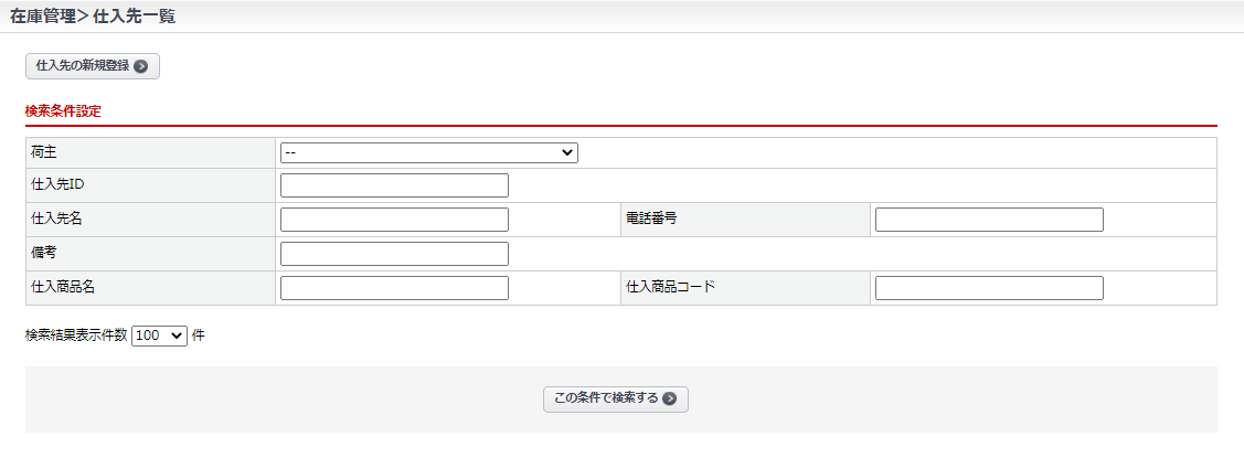 | 仕入先ID | 検索対象とする「仕入先ID」を入力します。 |