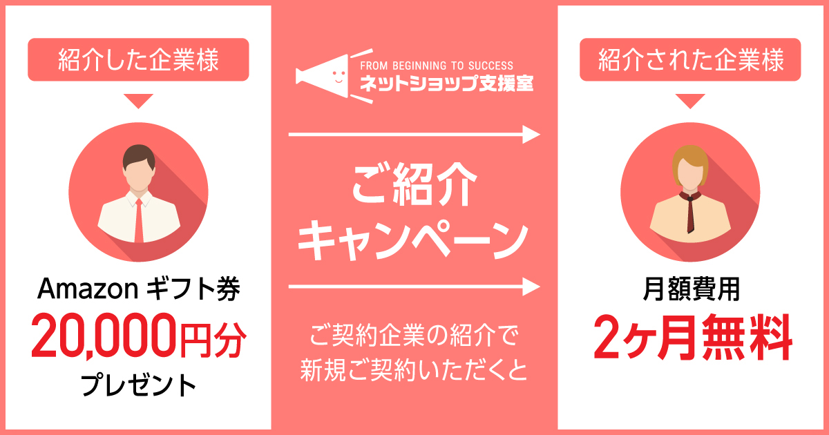 - 紹介された企業様の、初回お支払いの翌月にAmazonギフト券2万円分プレゼント!