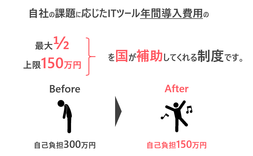 IT導入補助金は、中小企業・小規模事業者等のみなさまが自社の課題やニーズに合ったITツールを導入する経費の一部を補助することで、みなさまの業務効率化・売上アップをサポートするものです。日々業務が発生するルーティン業務を効率化させるITツールや、顧客等の情報を一元管理するようなクラウドシステム等の導入にご活用いただけます。