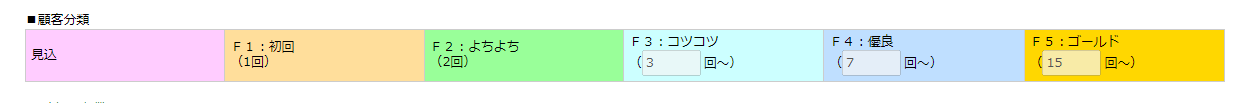 (※FはFrequency(頻度)。F1は初回顧客、F2は2回目の購入につながった顧客。F3~F5はn回目の定義を自由に設定可能)