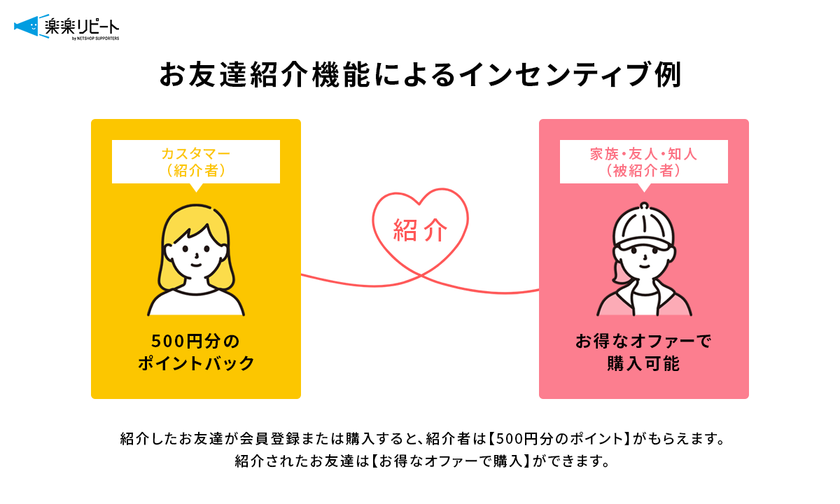 『お友達紹介機能』は、ECカートシステム「楽楽リピート」で構築したECサイトでご利用可能です。