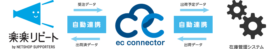 『ECコネクター®』を介することで、「楽楽リピート」と在庫管理システム等とのCSV連携が自動化されるなど、より多くのシステムとの連携が容易になります。これにより、ユーザーはより少ない手間で効率的かつ柔軟なデータ管理を実現できます。