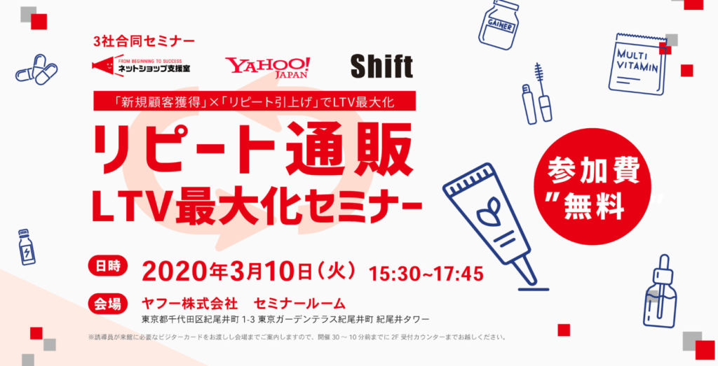 株式会社ネットショップ支援室は、Yahoo!株式会社と株式会社Shiftとの三社合同セミナーを開催いたします。