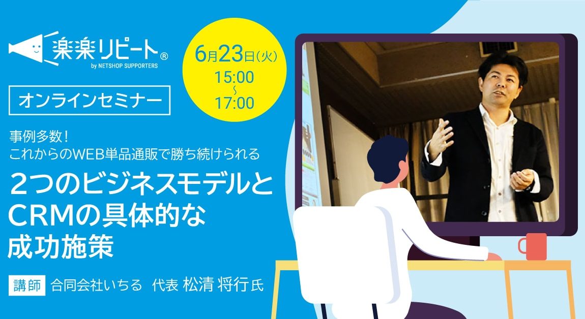 株式会社ネットショップ支援室は、2020年6月23日(火)、楽楽リピートご利用中のクライアント及びご検討中の企業様を対象とした、他社でのCRM成功事例に関する無料のオンラインセミナー(ウェビナー)を開催致します。