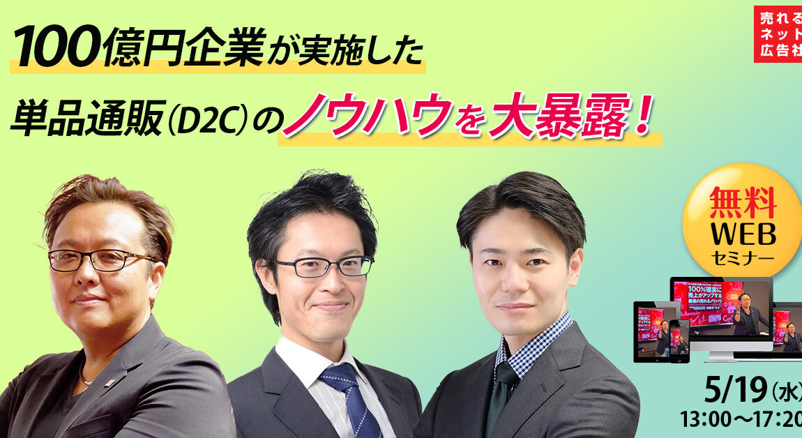 | タイトル | 100億円企業が実施した単品通販(D2C)のノウハウを大暴露! ~最適な新規獲得術から紙媒体の集客、カートシステムによるリピーター育成法について~ |