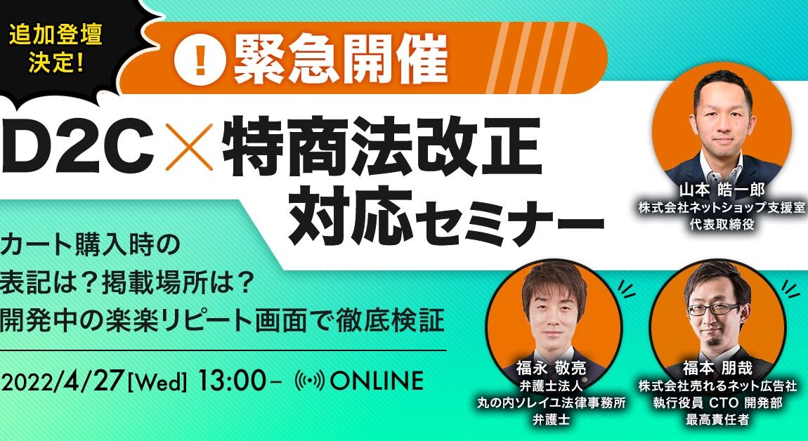 タイトル 【緊急開催】D2C ✕ 特商法改正対応セミナー
