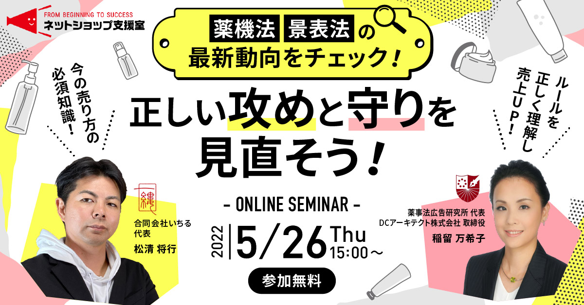 本セミナーでは「薬機法」「景表法」の最新動向を踏まえた広告表記やCRM施策など、EC運用における攻めと守りの手法をご講演いただきます。