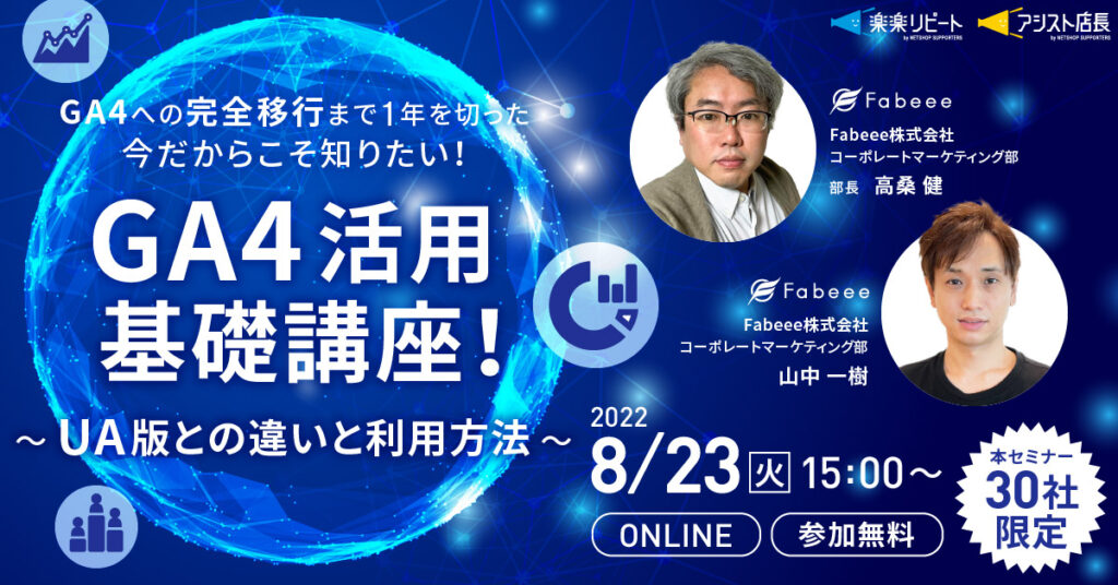 | タイトル | GA4への完全移行まで1年を切った今だからこそ知りたい!GA4活用基礎講座!~UA版との違いと利用方法~ |