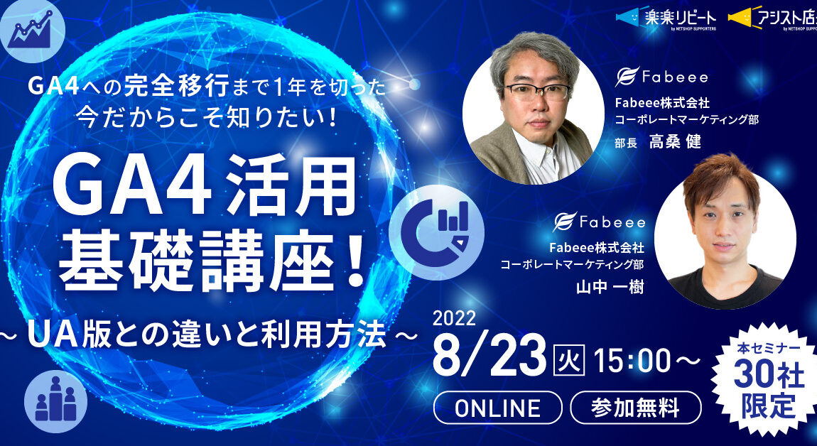 | タイトル | GA4への完全移行まで1年を切った今だからこそ知りたい!GA4活用基礎講座!~UA版との違いと利用方法~ |