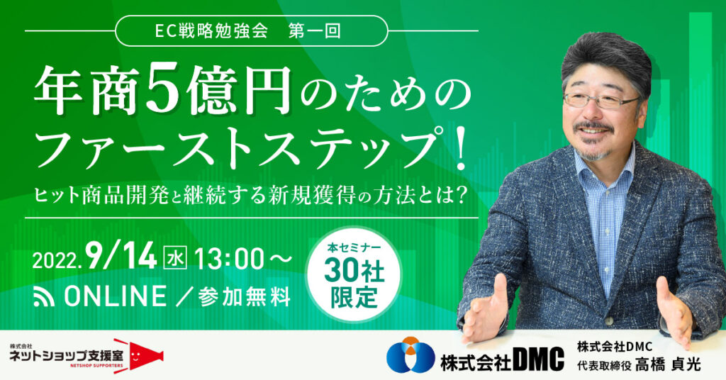 年商5億円のためのファーストステップ!ヒット商品開発と継続する新規獲得の方法とは?|ご契約者様限定セミナー:EC戦略勉強会 第一回