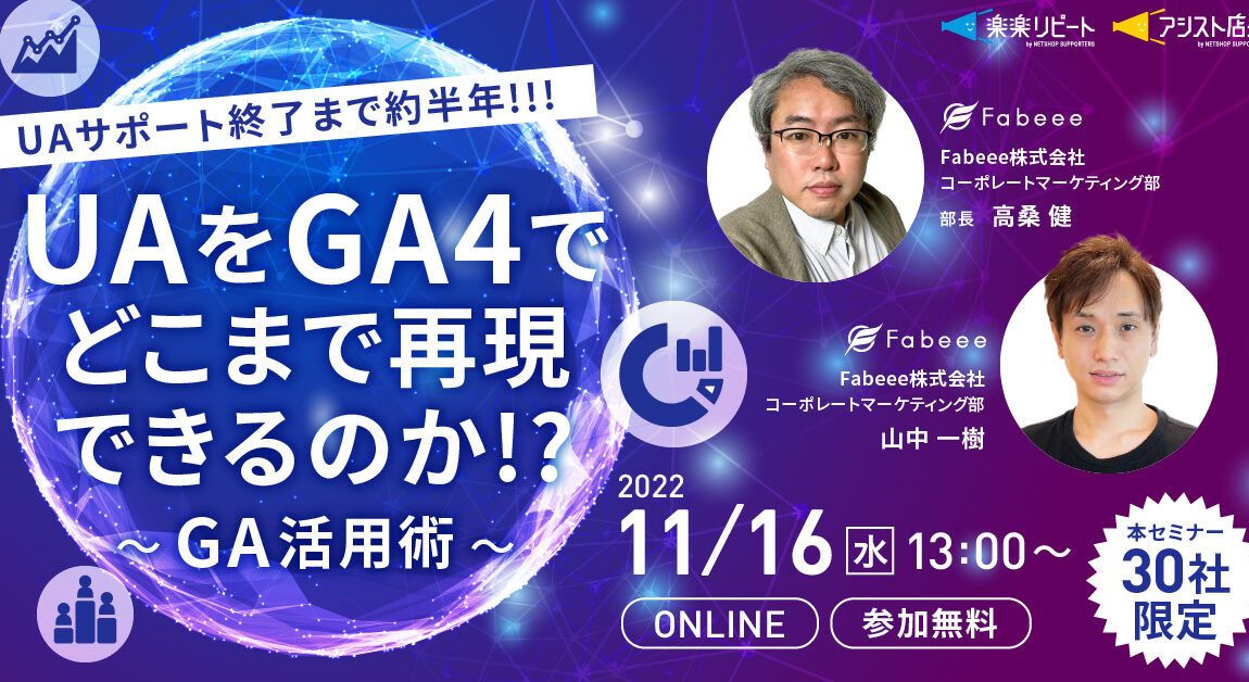 | タイトル | 【UAサポート終了まで約半年!!!】UAをGA4でどこまで再現できるのか!?~GA活用術~ |