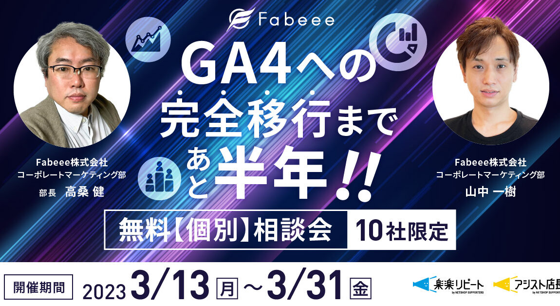 | タイトル | 【限定10社】GA4への完全移行まで半年!!/GA4個別相談会開催! |